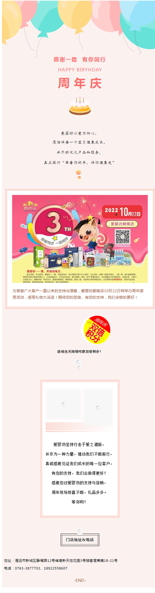【爱婴坊朝南店】10月22日与心同行,感恩有您周年庆
