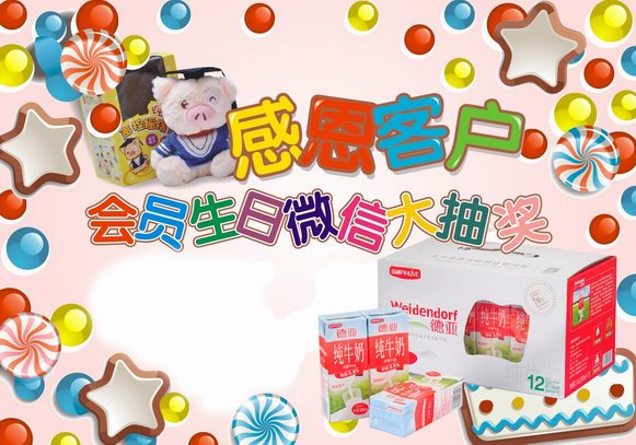 感恩客户,让客户感受生日幸运。2015年爱婴坊会员继续生日当天微信抽奖活动。凡爱婴坊十多年以来的所有新老客户均可参与“感恩客户 会员生日微信大抽奖”,这次的生日礼物有更新哦,只要亲们报名成功,2015年二月份,我们会在符合当天生日的报名名单中抽出2名幸运儿可获得“德亚常温奶(12支200ml装)”一箱,抽出1名幸运儿可获得“小宝丁叮声控摇摆公仔”一个。